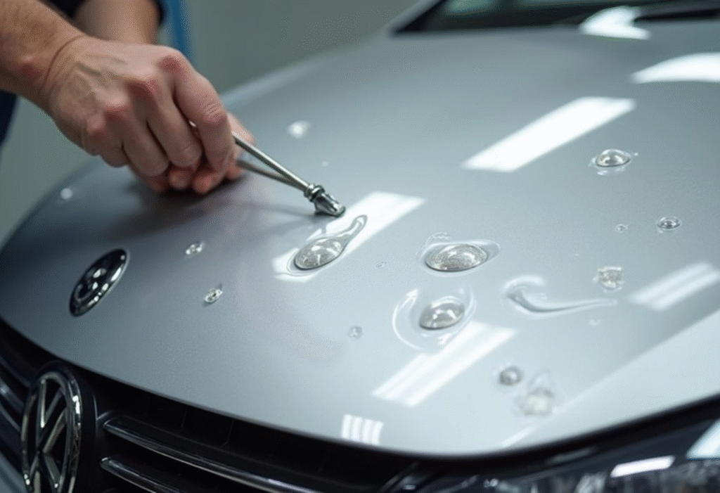 When the paint surface is still intact, PDR is often the best way to remove hail dents. We use specialized tools and controlled pressure to reshape the metal without sanding, filler, or repainting, which helps preserve the factory finish of your vehicle.